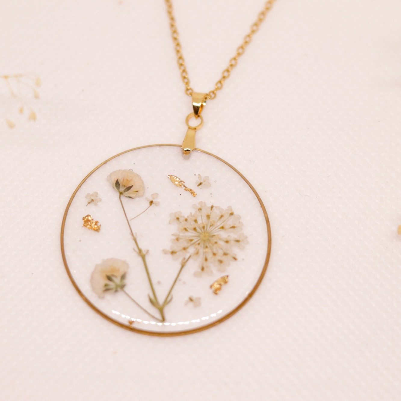 Ces bijoux uniques et originaux sont fabriqués à partir de véritables fleurs locales qui ont été séchées ou stabilisées pour conserver leur éclat et ainsi figer la beauté éphémère pour l'éternité.